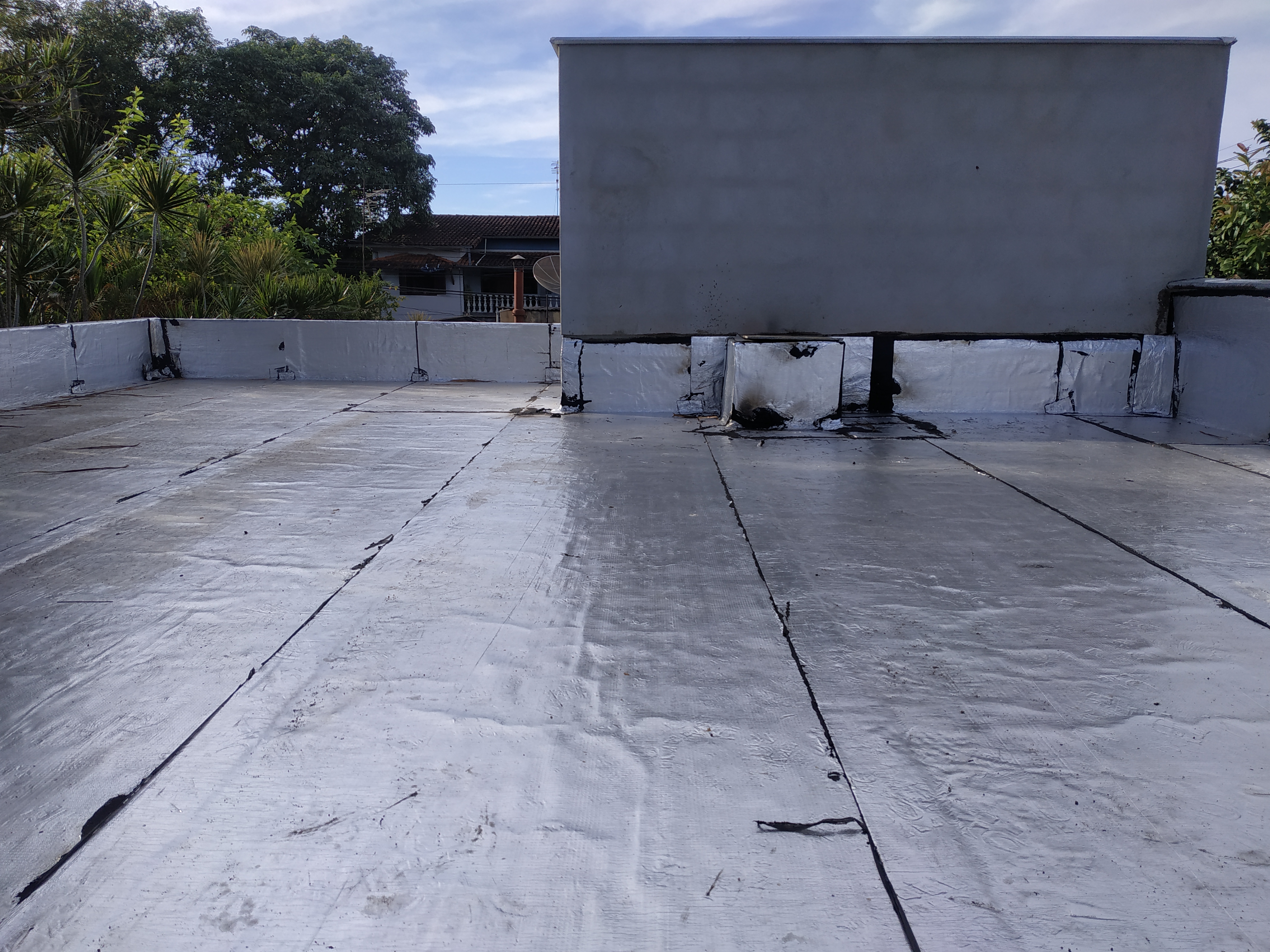 Observação: Lajes planas. A lajes planas precisam ser impermeabilizadas para evitar infiltrações. A inclinação mínima para essas lajes é de 1% em direção ao ponto de escoamento. As paredes ou platibandas ao redor destas lajes também devem receber impermeabilização de acordo com o material a ser utilizado. Isso significa que além da própria laje, mantas ou materiais impermeabilizantes devem cobrir parte da parede (uns 40-60cm, geralmente).